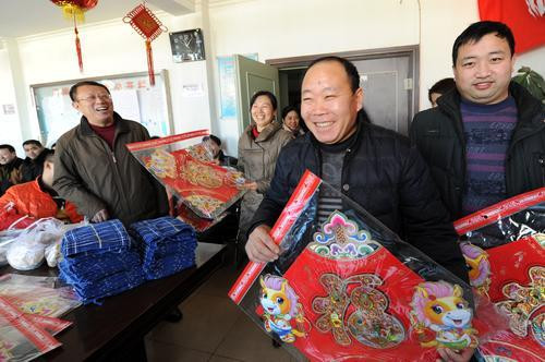 春节临近,兖矿集团兴隆庄煤矿组织女工协管员在15个井下一线单位班前会上,开展迎新春、送祝福、祝安全、保平安区队联谊慰问活动,把大红的福字和绣有安全为天、祝你平安字样的毛巾送到一线职工手中,为他们送上节日祝福和安全叮嘱,用爱心和亲情筑起矿井安全生产的第二道防线。据悉,活动将持续开展到春节过后。图为慰问活动场景。