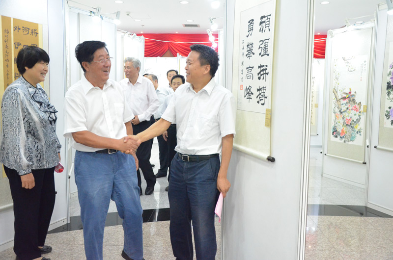 参加开幕式的领导观看展览作品