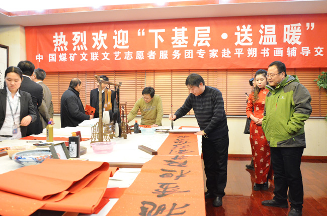 1月31日,由中国煤矿文联主办,中煤平朔集团公司承办的“走基层·送温暖”中国煤矿文联文艺志愿服务走进平朔活动在平朔矿区举行。此次活动由中国煤矿文化宣传基金会理事长、中国煤矿文联副主席庞崇娅带队,中国煤矿文化宣传基金会副理事长刘俊,中国煤矿文联副秘书长、《阳光》杂志社社长兼主编盛军,中国煤矿文联宣传处副处长辛凡忠和著名煤矿书法家马铭、陈彦丰、杨玉剑,画家陈思羽、呼玉忠、吕秀芹、仲立,著名相声演员连春建、张涛,青年歌唱演员孙国玉、田野等多位艺术家以及《中国艺术报》记者王雨檬,《中国煤炭报》记者孙宝福等参加志愿服务。