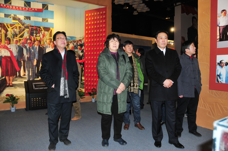 庞崇娅在马刚(前左三)和庞顺泉(前左一)的陪同下参观平朔博物馆