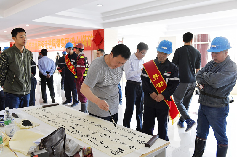 “今天我们安排了基层的5名书法家来到现场加入文艺志愿服务队伍,既是想为工人师傅们多创作一些作品,同时也是希望与煤矿文联请来的各位艺术家有更多更紧密地交流,这对锻炼文艺骨干和提升矿区文艺创作水平都是很好的机会。”杨占先介绍到。