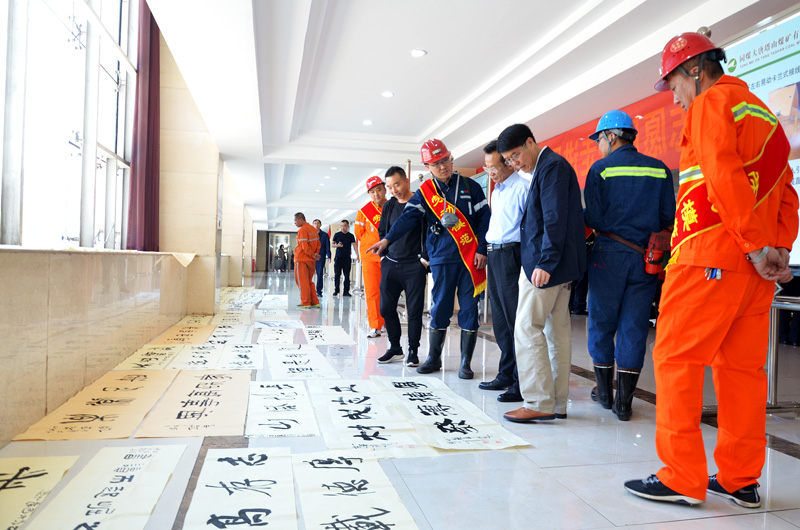 23日上午,志愿者们来到位列塔山循环经济工业园区龙头的现代化企业——塔山煤矿,矿区道路整洁、植被浓茂,在副井旁边的文化长廊通道,已经有几十名矿区劳模和职工代表在那里等候志愿者的到来。“一直想在家里挂上几幅书法作品,这不,听说今天中国煤矿文联组织到矿上文艺志愿服务,我就过来了,已经准备好了几句词,一会儿请书法家们给写写。”一位正准备下井的工人说。