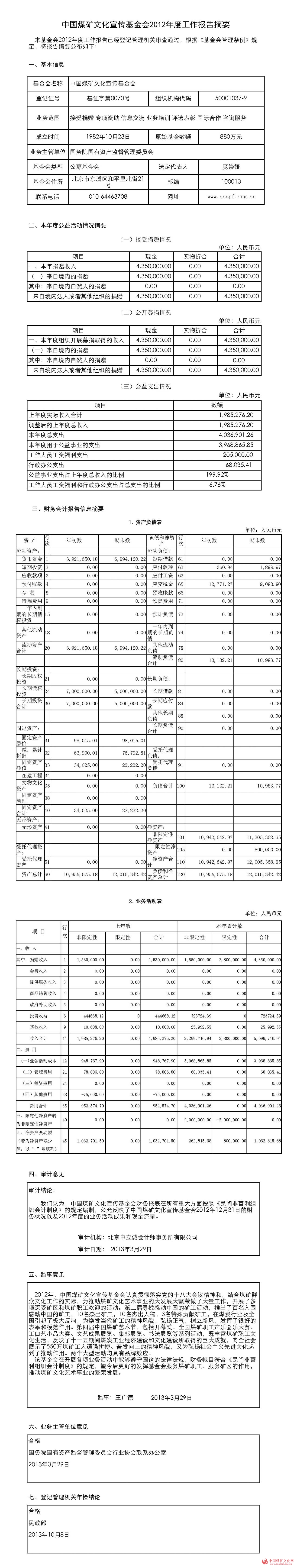 中国煤矿文化宣传基金会2012年度工作报告摘要