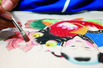 杨柳青年画老艺人在雕刻年画的木版 CFP