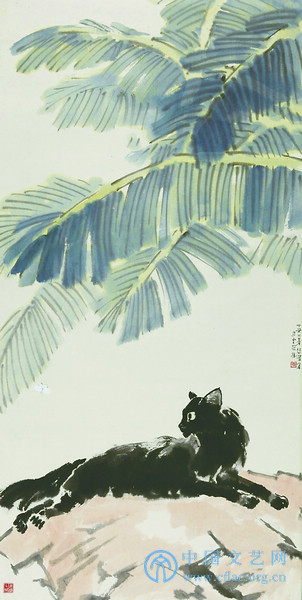 芭蕉黑猫(1937年) 108cm×54.9cm 徐悲鸿