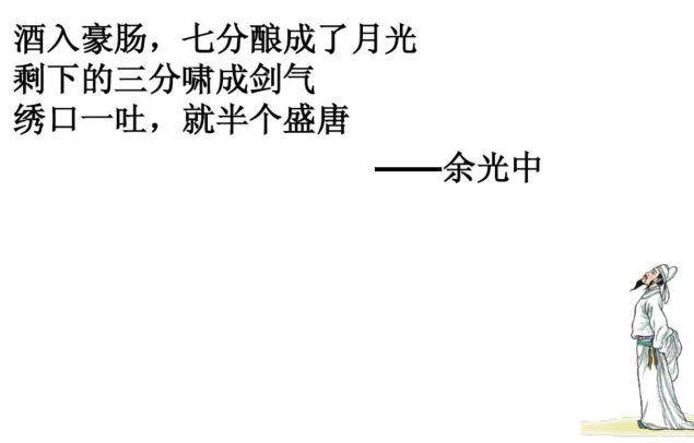 其次一点值得我们注意的,则是杜甫严肃中之幽默与担荷中之欣赏。我尝以为每一位诗人,对于其所面临的悲哀与艰苦,都各有其不同之反应态度,如渊明之任化,太白之腾越,摩诘之禅解,子厚之抑敛,东坡之旷观,六一之遣玩,都各因其才气性情而有所不同,然大别之,不过为对悲苦之消融与逃避。其不然者,则如灵均之怀沙自沉,乃完全为悲苦所击败而毁命丧生。
