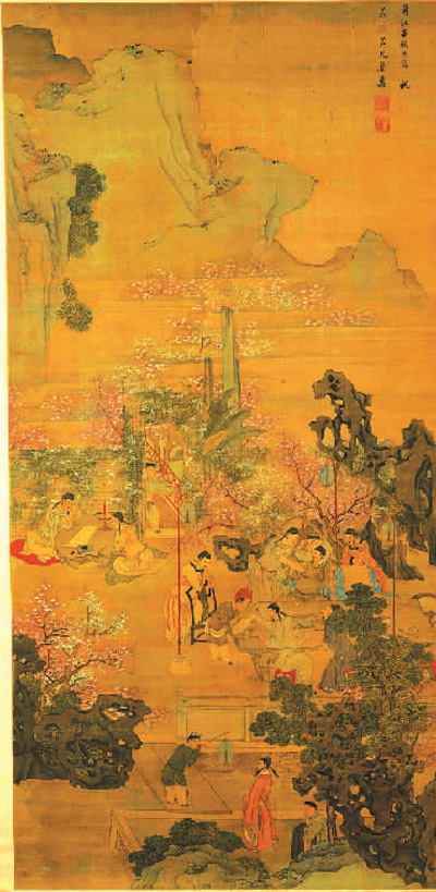 明代谢环所作的《杏园雅集图》藏于镇江博物馆,是近20年来首次外借,描绘了当朝官吏在杨荣的杏园内聚会娱乐的情景,画家谢环本人也在其中。画面有着强烈的秩序感,画中众人酒酣耳热,表达着聚会的欢愉之情。