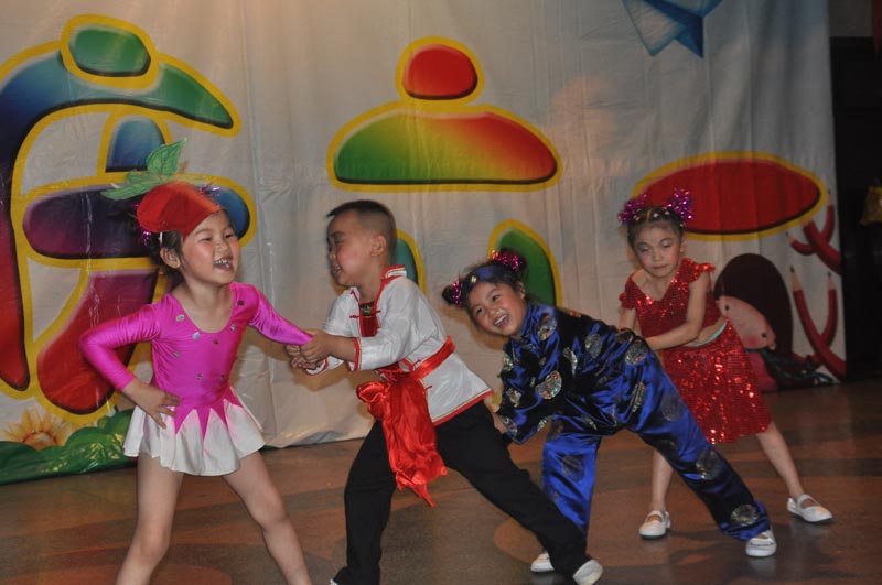 晚8点,晚会在舞蹈《欢乐中国年》中拉开了序幕,酷劲儿十足的《蛙趣》《波斯猫》《蓝精灵》,美丽优雅的《茉莉花》《虫儿飞》《小小雨花石》,欢快活泼的情景剧《拔萝卜》《一分钱》《我不上你的当》,充满希望的《小星星》《早早起》《蓝精灵》,童稚童趣的童话故事《驼背小龙虾》《两只笨狗熊》……一个个精彩的节目闪亮登场,歌曲、街舞、独舞、手语操、独手操、搏击拳、独唱……展示了小朋友的多才多艺。