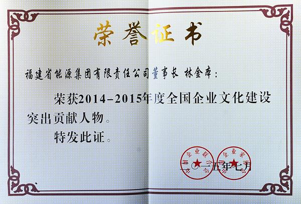 福能集团董事长、党委书记林金本荣获“2014—2015年度全国企业文化建设突出贡献人物”称号