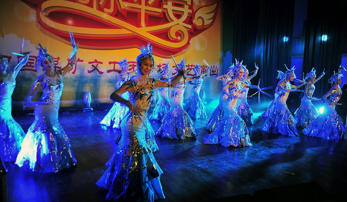 演出前,公司执行董事、总经理黄金平演出前发表了热情洋溢的讲话。接着,欢快的舞蹈《胜利欢歌》拉开了慰问演出的帷幕。接着艺术家们纷纷登台亮相,为广大观众表演了舞蹈、相声、口技、川剧、魔术、男女声合唱等精彩节目。