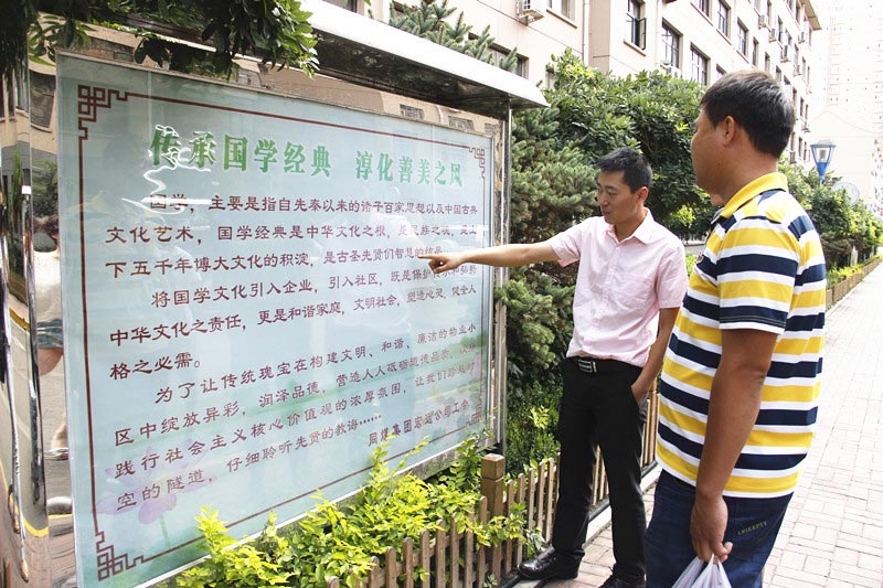 为了让传统文化在构建文明、和谐、廉洁的小区中绽放异彩,营造人人砥砺道德品质,以身践行社会主义核心价值观的浓厚氛围,同煤集团宏远公司工会制作了以传承国学经典为主要内容的牌板并在宏福小区悬挂。