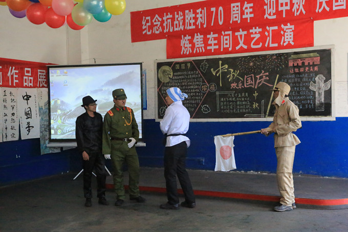 10月10日下午,煤化工公司炼焦车间为欢庆中秋、国庆双节,纪念中国人民抗日战争暨世界反法西斯战争胜利70周年,举办了车间有史以来第一次文艺汇演。