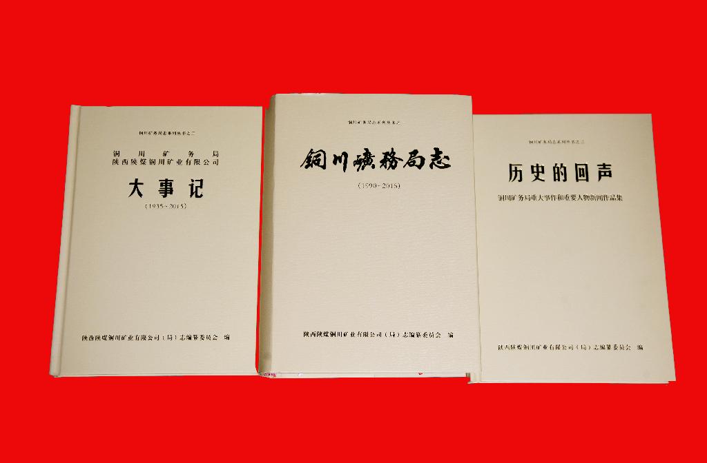1995年出版的《铜川矿务局志(第一卷1955—1990年)》为单行本,此次出版的向铜川矿务局成立60周年献礼的系列历史文化丛书分为三本,分别是《铜川矿务局志(第二卷)》,《铜川矿务局大事记》和《历史的回声——铜川矿务局重大事件和重要人物新闻作品集》。