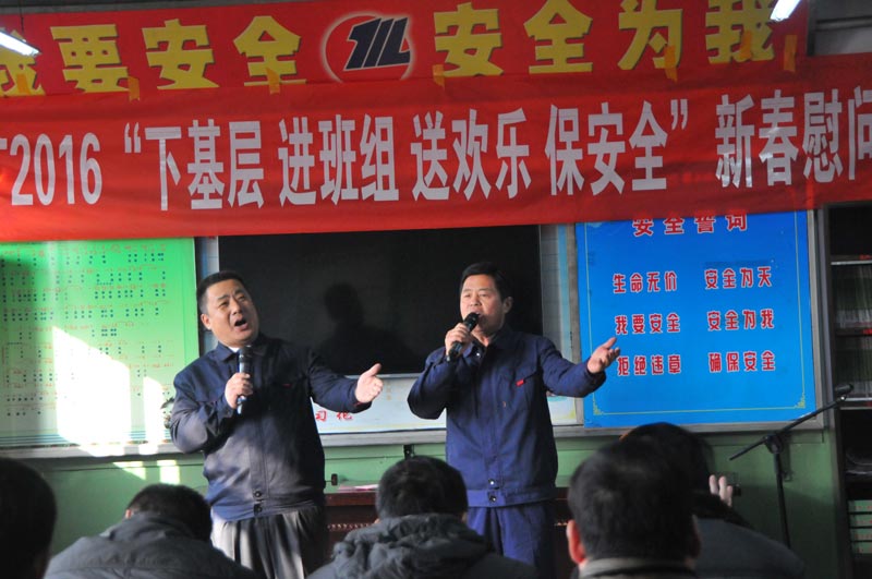 为进一步营造节日氛围,助力年终安全生产,丰富广大职工业余文化生活。元月26日--27日,枣矿集团蒋庄煤矿工会组织优秀文艺节目,先后深入综采二区、通防工区、弘大公司等单位,深入开展了“下基层、进班组,送欢乐、保安全”新春慰问演出,赢得了广大职工的热烈欢迎。