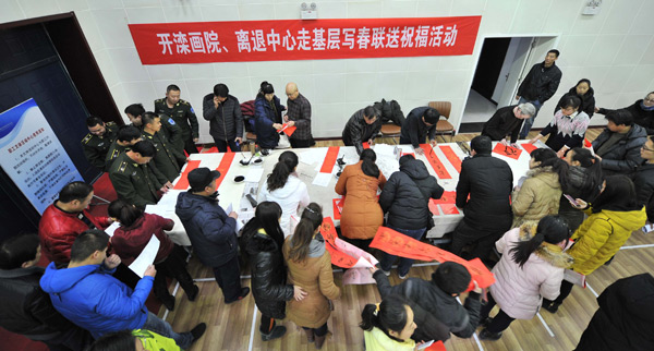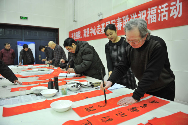 1月27日,开滦画院五位老在开滦文体中心主任陈宝玉的带领下,带着集团公司的亲切关怀,专程到兴隆公司为广大职工朋友们写春联送祝福活动。