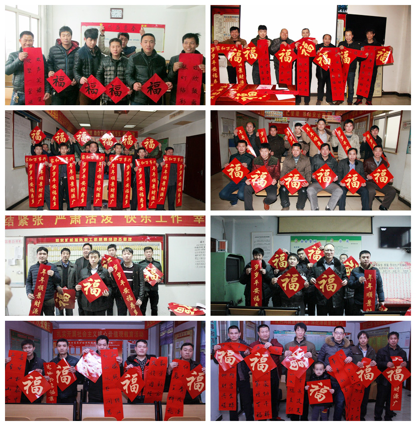 工会提前准备,及时组织书法协会义务写对联400多副。一幅幅火红的春联和“福”字送到职工手中,既送上了对矿区职工新年幸福生活的美好祝愿,同时也让职工感受到企业大家庭的温暖。职工们手中拿着一幅幅充满喜庆的春联的同时,脸上还洋溢着矿区和谐、平安、幸福的笑容,彰显出葛泉矿新年更加浓郁的节日氛围。