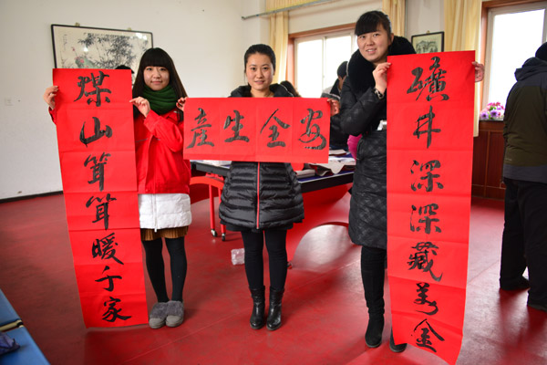 华亭煤业集团东峡煤矿开展了为职工义务写春联送祝福活动 来源:华亭煤业集团东峡煤矿 作者:白银宝 时间:2016-02-06 【字体:小 大】 2月3日,甘肃华亭煤业集团公司东峡煤矿组织书法爱好者在职工活动室开展了“写春联、送春联”活动,为职工家属书写春联200多幅,为新年增添了亮丽色彩。图为“写春联、送春联”活动现场。 智能标签: 华亭煤业集团 东峡煤矿 相关内容 分享到: 【打印正文】