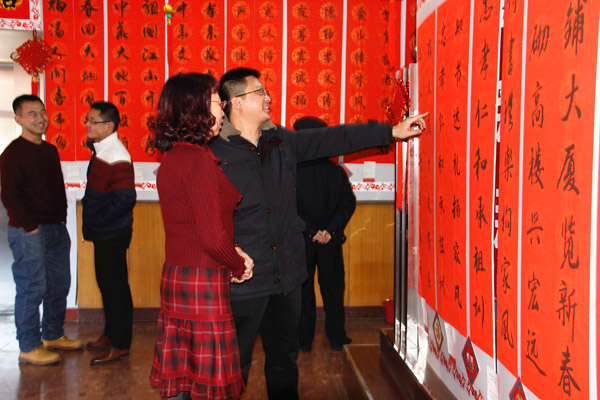 同煤集团宏远公司举办“家德家风”春联展 来源:同煤集团宏远公司 作者:徐彩虹 时间:2016-02-06 【字体:小 大】 “金猴腾跃传家风,翰墨飘香扬美德”。2月5日,宏远公司“迎新春”职工春联展在一楼大厅开展。 本次春联作品以家德家风为主题,职工自行书写春联的形式,以弘扬传统美德,体现和谐、欢乐的家庭氛围为宗旨,经过该公司工会精心筹备、认真组织,共征集职工参展春联作品150余副。这些用心书写的春联挥洒着喜庆与祥瑞,给公司营造了浓厚的节日氛围。活动吸引了广大职工积极前来观展,赞叹声不断。 据悉,本次活动作为头彩正式拉开宏远公司丰富多彩的春节系列活动的帷幕。 智能标签: 同煤集团 宏远公司 相关内容 分享到: 【打印正文】