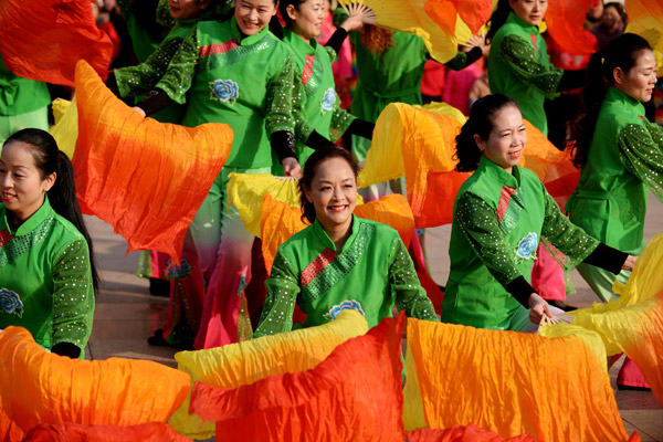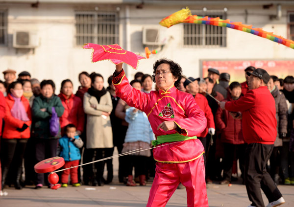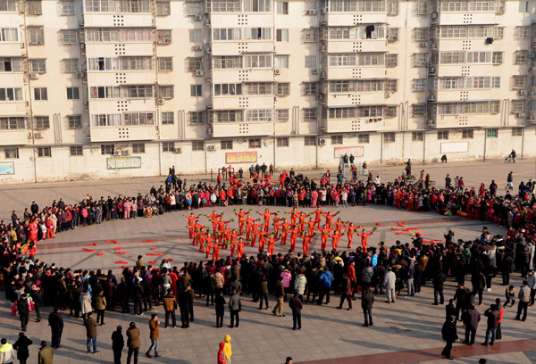 2月8日大年初一,淮北矿业集团朱仙庄矿在职工文化休闲广场举办迎新春大型民间文艺表演。欢庆锣鼓、舞龙、花车旱船、腰鼓、抖空竹表演等节目,给矿区广大职工家属送上了丰盛的“精神大餐”。