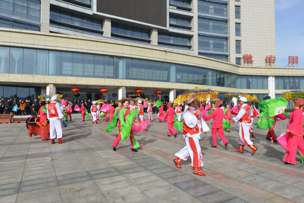“咚咚咚……”,随着领头锣鼓的敲响,演员们精神抖擞的表演着,伴着铿锵的锣鼓声,挥舞着鲜艳的彩扇,挥洒着新春的激情。他们扮相喜庆、或表情夸张、或表演滑稽,引来了员工们的阵阵笑声。伴随着不断变化的锣鼓声,只见扎场的秧歌队形也在不断的变化着,间或又有“蛮婆蛮汉”的插科打诨、赶毛驴表演的嬉笑怒骂,整场表演高潮迭起,赢得了场外的阵阵叫好声。精彩的表演营造出了浓厚的新春氛围,也展现出了员工们对美好生活的热爱,预示着在新的一年我们将以最大的热情投入到新工作、新生活中去。