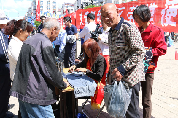 “缝纫机已就绪”、“配钥匙机已安装完毕”、“健康资料、计生用品已备齐”、“血压计、体重称、家电修理工具已备好”……