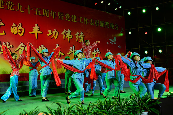 潞安集团司马煤业公司举办纪念建党95周年暨党建工作表彰颁奖文艺晚会 来源:潞安集团司马煤业公司 作者:秦鸿彬 时间:2016-06-30 【字体:小 大】 在“七·一”来临之际,为了庆祝中国共产党建党95周年,歌颂党的丰功伟绩,并对党建工作进行表彰颁奖,潞安集团司马煤业公司于6月29日晚举办了专场文艺晚会,通过自编自演的歌舞、音诗舞话等节目,欢庆“七·一”。图为晚会现场。 智能标签: 潞安集团 司马煤业公司 相关内容 分享到: 【打印正文】