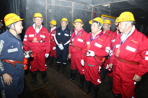 薛跃一行换上工作服,来到25207综采工作面。在井下现场,薛跃认真听取了红柳林公司创客服务安全生产的成果介绍及过程控制精细化管理现场实践介绍,并不时询问煤层赋存条件、开采设备参数、开采工艺等。