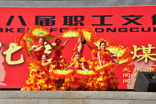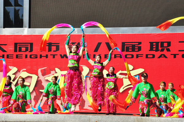 大同市文化博览会做为大同的品牌文化活动已成功举办了七届,同煤集团为能让此次文化博览会圆满成功,特地从今年职工文艺汇演的122个文艺节目当中,精心挑选了30个优秀节目组合编排了两场文艺演出。喜庆吉祥的舞蹈《鼓舞飞扬》、《平安是福》,独具地方特色的唢呐独奏《打枣》以及大同数来宝《婆媳之间》、《逢九》等丰富多彩的节目使现场的气氛高潮迭起、掌声不断。随着本场文艺演出的结束,今年的“相约文化宫”广场文化展演也成功落下了帷幕。
