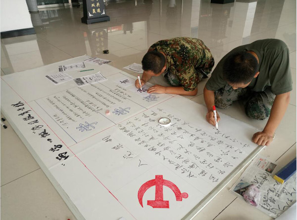 近日,陕煤化集团神南救护大队开展了一次特色党员活动日,大队党员亲手参与了“两学一做”专题板报制作,让全体党员干部补好“钙”加足“油”,营造学习教育良好氛围。