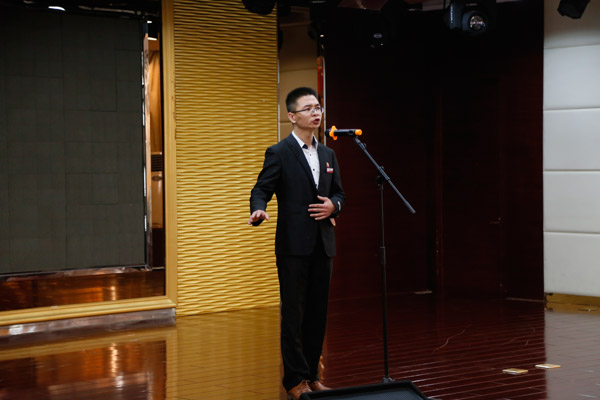 生活中心党支部参赛选手高欣正在满怀激情的演讲
