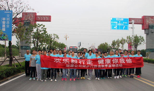 国庆节来临之际,为丰富职工文体生活,陶冶职工高尚情操,倡导健康环保理念,9月29日下午,安徽楚源工贸有限公司健步行协会以“欢乐毅行走,健康你我他”为主题的秋季首场活动在毛集焦岗湖畔激情举办。