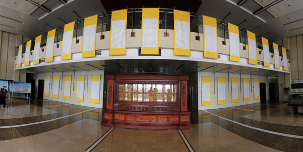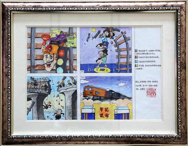 经过层层筛选,此次书法漫画展共展出漫画作品67幅,漫画内容紧扣主题、观点鲜明、寓意深刻;展出书法作品31幅,内容为《党章》全文,共17200字,由车务段杨峰用毛笔楷书抄写。
