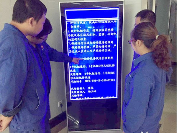 为有效发挥电子宣传屏的作用,该公司发电运行部根据每日机组运行状态、设备缺陷、检修设备工作进度等,安排专人负责电子屏内容的播放、更新和日常维护,主要内容包括:风险事项、风险控制措施、风险控制人、监视人等。据悉,该电子屏将每日不间断滚动播放风险事项发布内容,为公司安全生产稳定局面起到了积极的作用。