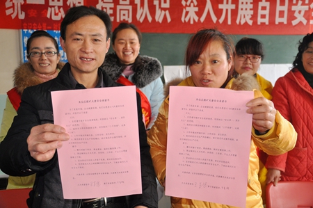 夫妻安全承诺书 家庭合力保安全 来源:淮北矿业集团朱仙庄矿 作者:王道玉 时间:2016-12-19 【字体:小 大】 12月16日,淮北矿业集团朱仙庄矿职工王吉伍与妻子马春梅展示签订的《夫妻安全承诺书》。《承诺书》中丈夫承诺:严格遵章守纪,按章操作,远离“三违”。妻子承诺:照顾好家庭,不让丈夫带着情绪上班,保证丈夫上班前禁止饮酒,并长吹枕边安全风。为确保岁末年初矿井安全生产,该矿组织部分职工与妻子签订《夫妻安全承诺书》,将安全防线前移至家庭,努力形成家庭与企业、丈夫与妻子合力保安全的良好局面。 智能标签: 淮北矿业集团 朱仙庄矿 相关内容 分享到: 【打印正文】