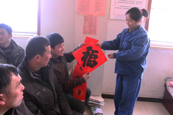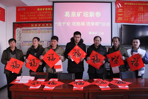 活动中,女工协管员把红红火火的福字和一幅幅春联送到一线职工手中,同时送上新年的美好祝福和安全生产的叮嘱,让广大职工在喜庆过新年的同时,把安全生产放在心头,为矿井安全生产保驾护航。