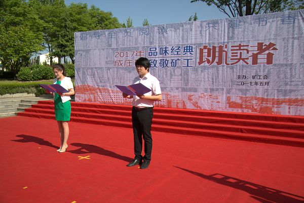 为了深入贯彻落实集团公司、矿“两会”精神,积极响应矿党委关于“全民阅读”的倡议,号召全矿广大员工加入到读书求知的行列。5月10日上午,阳光明媚、环境优美的进矿公园里传来琅琅书声,由晋煤集团成庄矿工会主办的首届“品味经典、致敬矿工”朗读者活动正在进行。