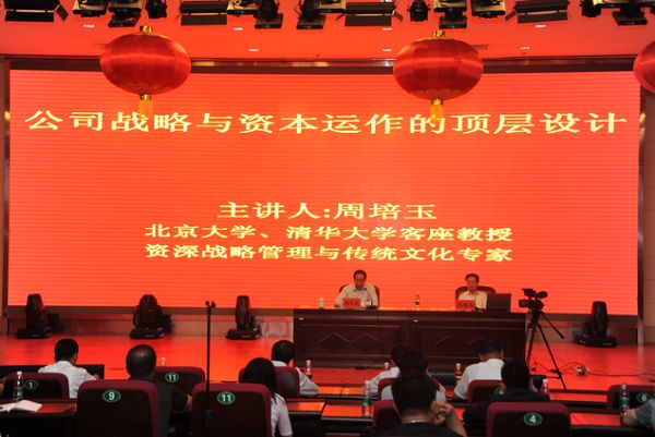 5月24日,同煤集团同忻矿组织副总以上矿领导、科级干部70多人赴塔山矿参加专题培训的一幕。北京大学、清华大学客座教授、资深战略与管理传统文化专家周培玉作了题为《公司战略与资本运作的顶层设计》专题讲座。
