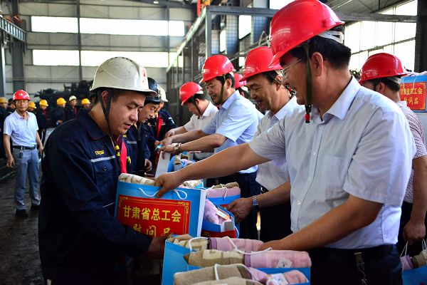 甘肃省总工会“夏送清凉”慰问活动走进华亭煤业集团 来源:华亭煤业集团东峡煤矿 作者:白银宝 时间:2017-07-14 【字体:小 大】 7月12日,甘肃省总工会党组书记、常务副主席刘为民一行冒着炎热酷暑天气,来到华亭煤集团公东峡煤矿为酷暑坚守在的一线矿工兄弟送去了茶叶、冰糖、绿豆、毛巾、香皂等防暑和劳动防护用品。 据悉“夏送清凉”是甘肃省总工会2017年“十大行动.健康幸福行动”的组成部分。 智能标签: 华亭煤业集团 东峡煤矿 相关内容 分享到: 【打印正文】