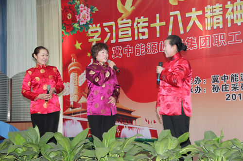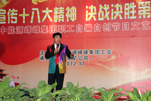 11月中旬,由冀中能源峰峰集团公司工会主办和孙庄采矿公司工会协办的学习宣传十八大精神,决战决胜第四季度职工自编自演节目文艺汇演在孙庄采矿公司拉开帷幕。来自峰峰集团公司15个基层单位的23个节目参加了展演。