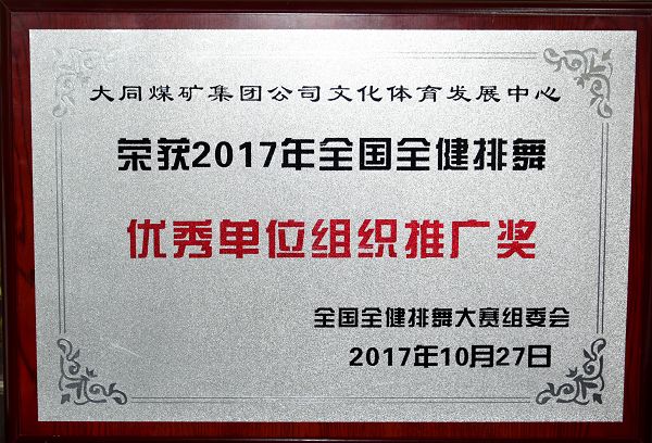 日前,由中国职工文化体育协会、全健排舞文化发展中心、全健排舞大赛组委会主办的第六届全国全健排舞大赛在甘肃敦煌大剧院圆满落下了帷幕。同煤集团代表队不负众望,一路过关斩将从全国30支参赛代表队之中脱颖而出,夺得了四金一铜的好成绩,同煤集团荣获2017年全国全健排舞优秀单位组织推广奖。