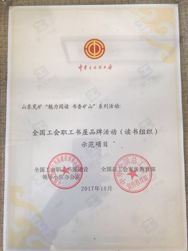 兖矿集团济二矿“魅力阅读.书香矿山”职工读书活动被全总授予“全国工会职工书屋品牌活动示范项目”