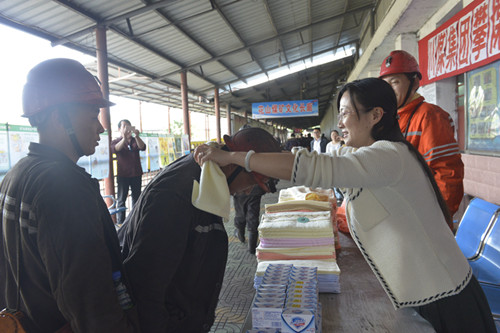 公司工会及该矿工会负责人在为其发放小礼品和毛巾的同时,更不忘为矿工兄弟送上真诚嘱托,叮嘱他们在井下要注意安全,要强化自保、互保意识,“安安全全下井、平平安安升井”。