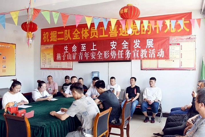 6月7日,该矿团委组织青年安全宣讲小分队走进机掘二队换班室进行“生命至上、安全发展”为主题的青年安全宣讲活动。此次宣讲以事故案例分析、事故反思教育等为主要内容,目的是通过活动,有效提高广大员工的安全责任意识,将安全理念、法律法规传播到生产岗位,渗透到每一位员工的脑海,动员青工积极投身到“做强做优企业、共创燕矿辉煌”创建进程中。图为该矿青年安全宣讲小分队走进机掘二队换班室进行安全宣讲现场。