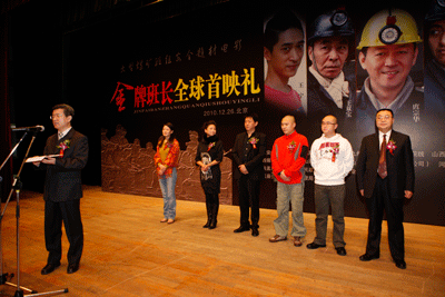 12月26日,在全国煤矿班组安全建设推进会召开期间,由国家安全生产监督管理总局宣传教育中心、北京九州同映国产数字电影院线、山西飞天影视传媒有限公司等单位联合摄制的煤矿班组安全题材故事影片《金牌班长》在北京举行了隆重的首映式。