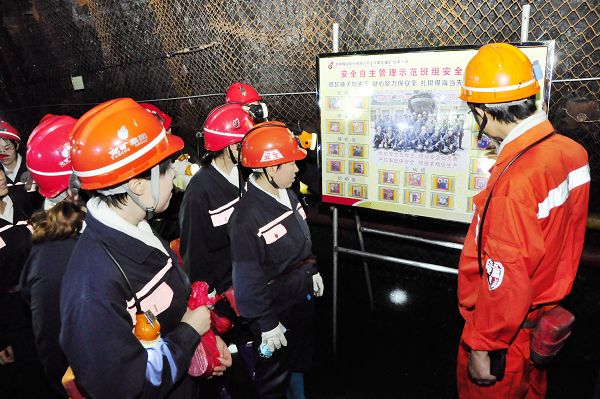 “井下升井通道还养着金鱼,贴着地板砖呢!”“真是夏日避暑好地方。”宽敞明亮的巷道、“轰隆隆”的乘人小火车,晃晃悠悠的“猴车”,让第一次下井的矿嫂们格外惊奇,一路上兴致勃勃地交谈。