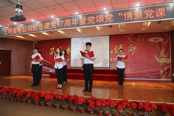 7月19日,王坪发电公司“不忘初心,牢记使命,纪念建党97周年爱党颂党”情景党课正式开讲,该公司党政领导、全体党员参与其中,为党的生日献上了一曲美妙的赞歌。