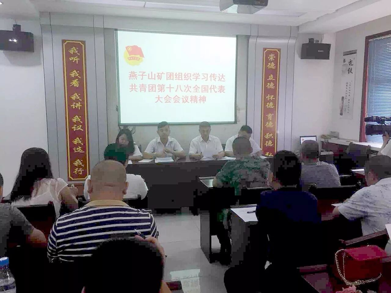 本次活动,该矿团委向各单位团支部书记宣传贯彻习近平新时代中国特色社会主义思想和团的十八大精神,进一步引导大家知党恩、感党恩,形成浓厚的舆论氛围和正确的舆论导向。安排各单位团支部书记向广大团员以各种宣传方式贯彻学习“习近平新时代中国特色社会主义思想和团的十八大精神”正确认识时代责任和历史使命,正确认识远大抱负和脚踏实地,深刻领会习近平新时代中国特色社会主义思想和党的十九大精神,并把学习成果转化为推动企业转型发展的强大动力。图为活动现场。