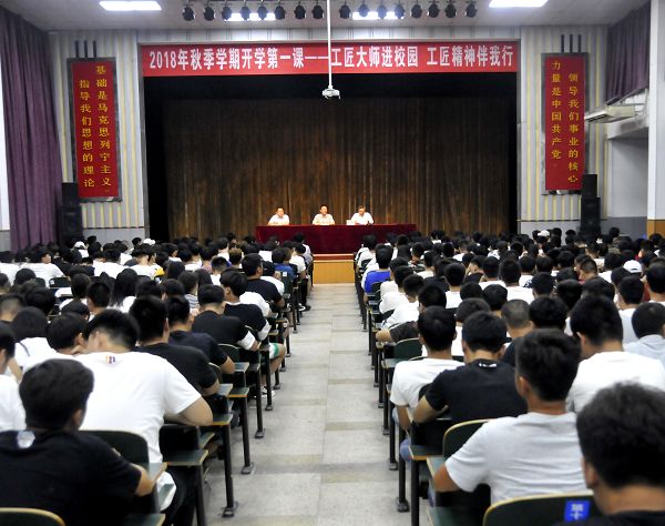 开学第一课上什么?安徽淮北煤电技师学院以“工匠大师进校园 工匠精神伴我行”为主题进行了入学教育。
