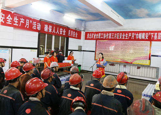 近日,淮北矿业集团女职工协作第三片区安全生产月“巾帼嘱安”下基层活动走进许疃矿,协安员们用揭疤忆痛、诵读家书、说唱安全的方式,叮嘱广大干部职工“生命至上 安全第一”,为安全生产月加油助力。