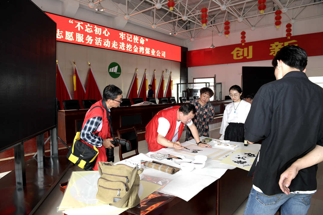 活动中,作家协会的文艺志愿者们通过座谈走访,与挖金湾煤业公司的先进工作者们进行了深入交流并收集了广泛生动的写作素材,美术书法协会和摄影协会的文艺志愿者们分别用笔墨和镜头以新时代同煤为创作背景,书写描绘反映新时代同煤员工奋发向上的精神面貌。